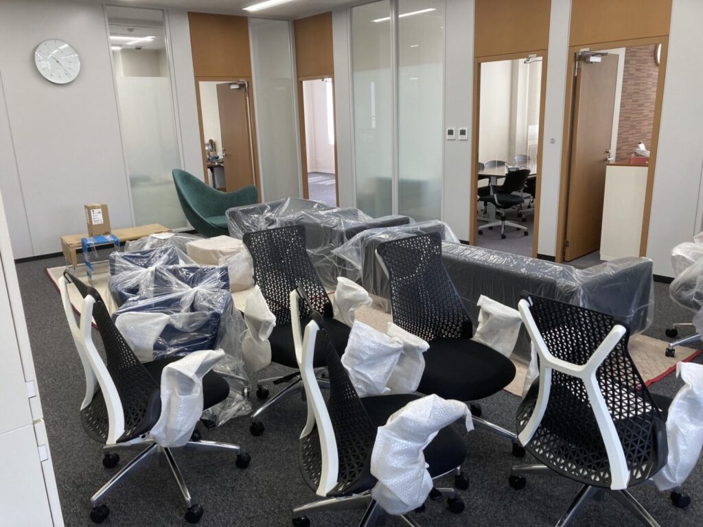 内装工事として床のタイルカーペット張替え、オフィス家具のリニューアル💫