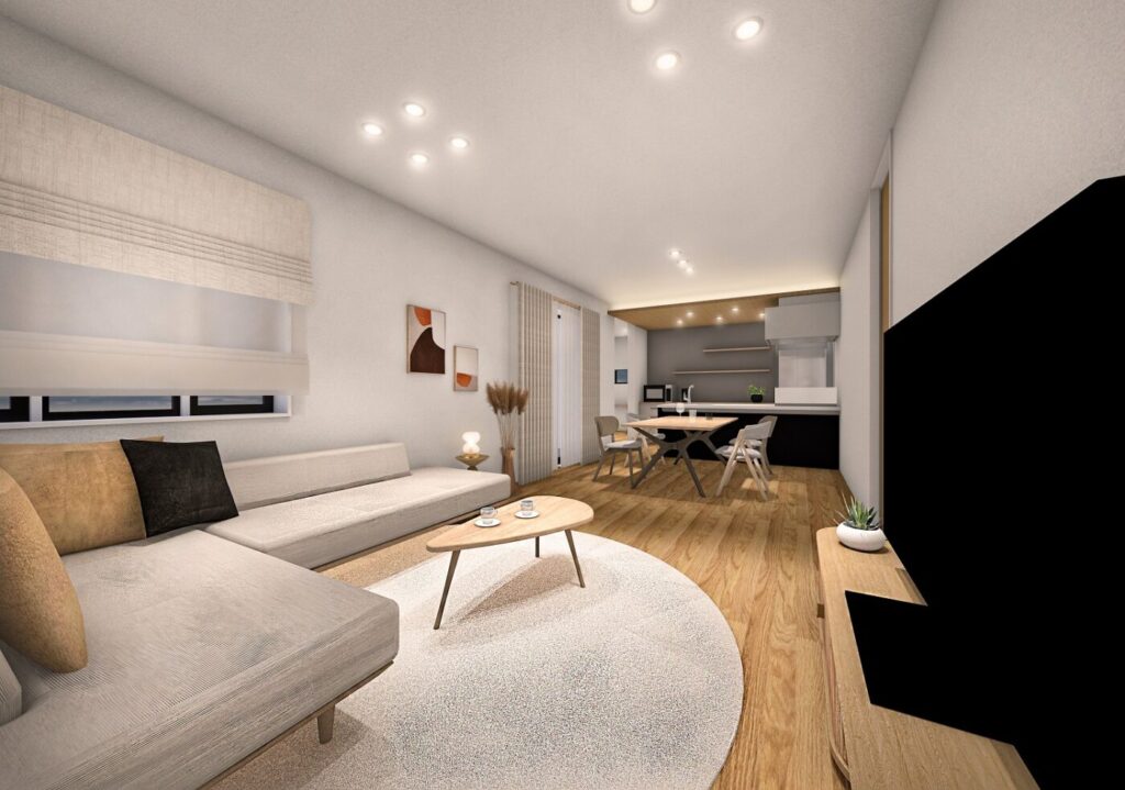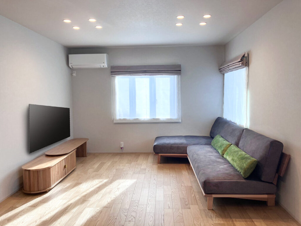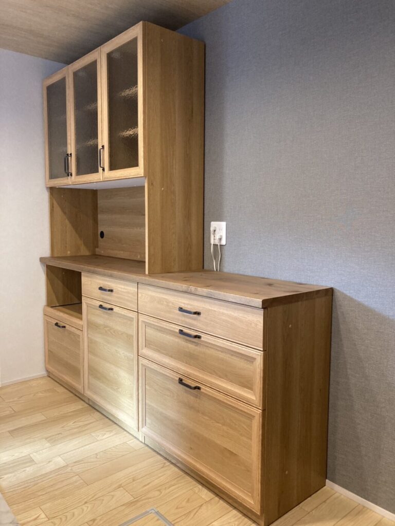 ご新居のLDKを中心にインテリアコーディネートを承りました。ジャパンディインテリアがお好みのスタイルとのことで、全体的に明るくナチュラルな家具にてご提案。当初はソファ・チェアのファブリックには淡い色合いをお勧めしていましたが、猫ちゃんがいるとのことで、実用面を考慮してウォッシャブル可能な生地で、色味のあるカラーを選定(^o^)丿