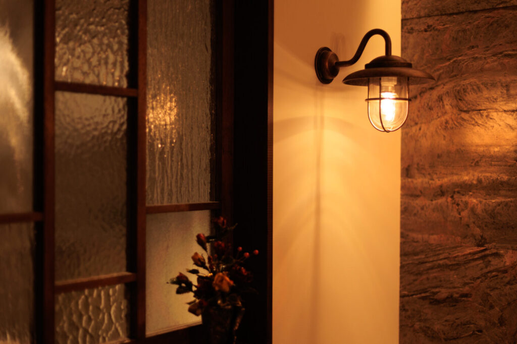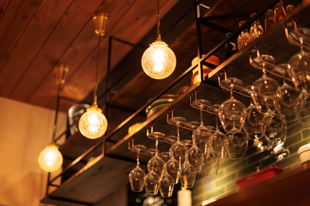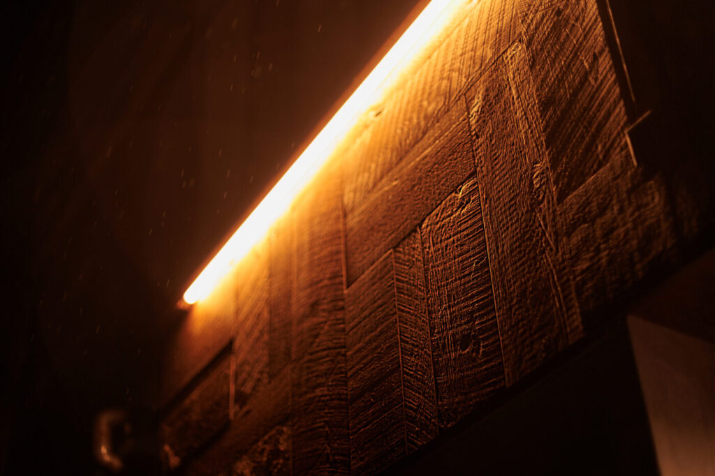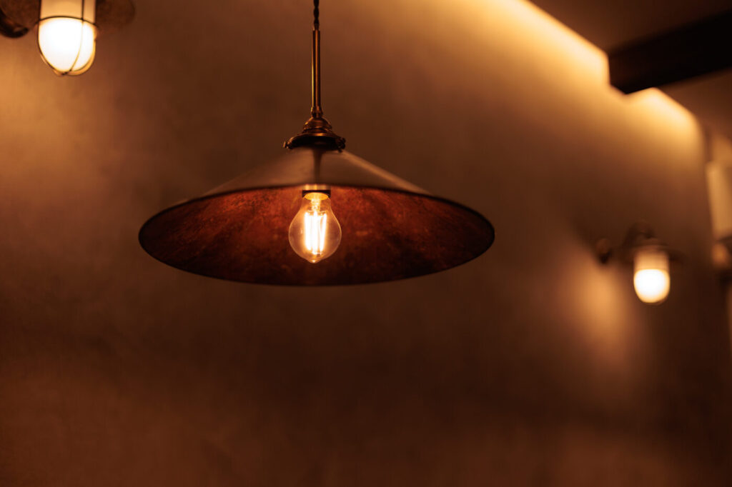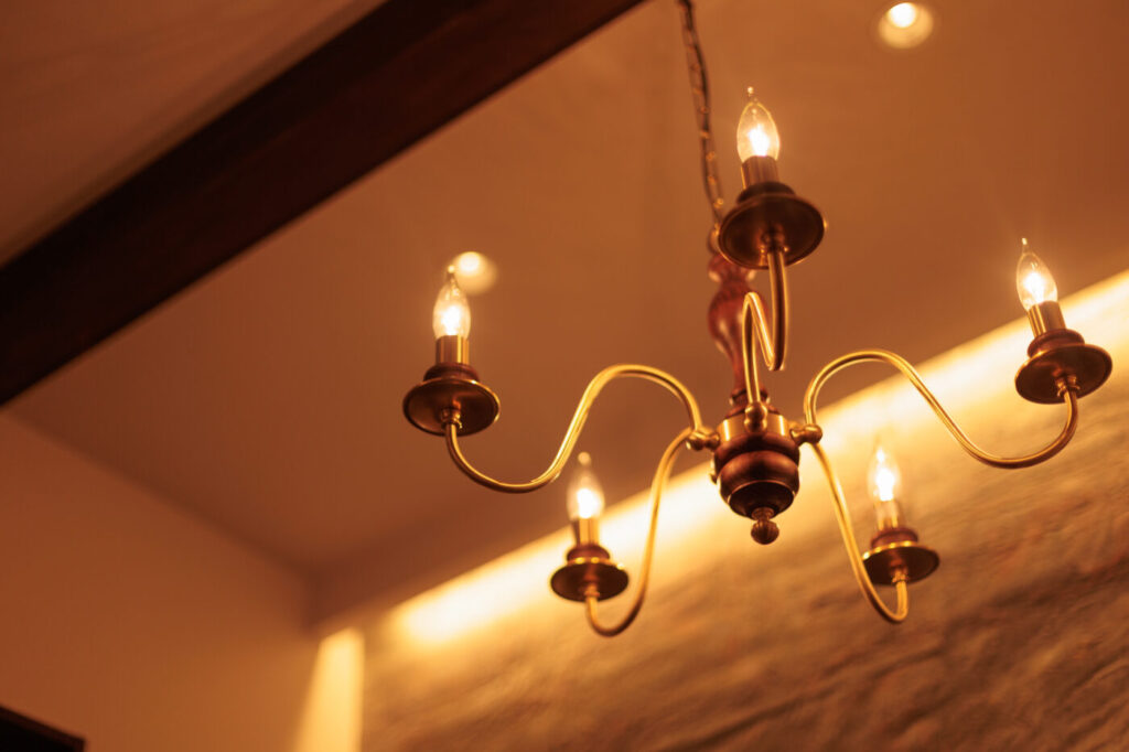 間接照明を随所に設け…アクセントにアンティークウッドのオーダーシャンデリア✨