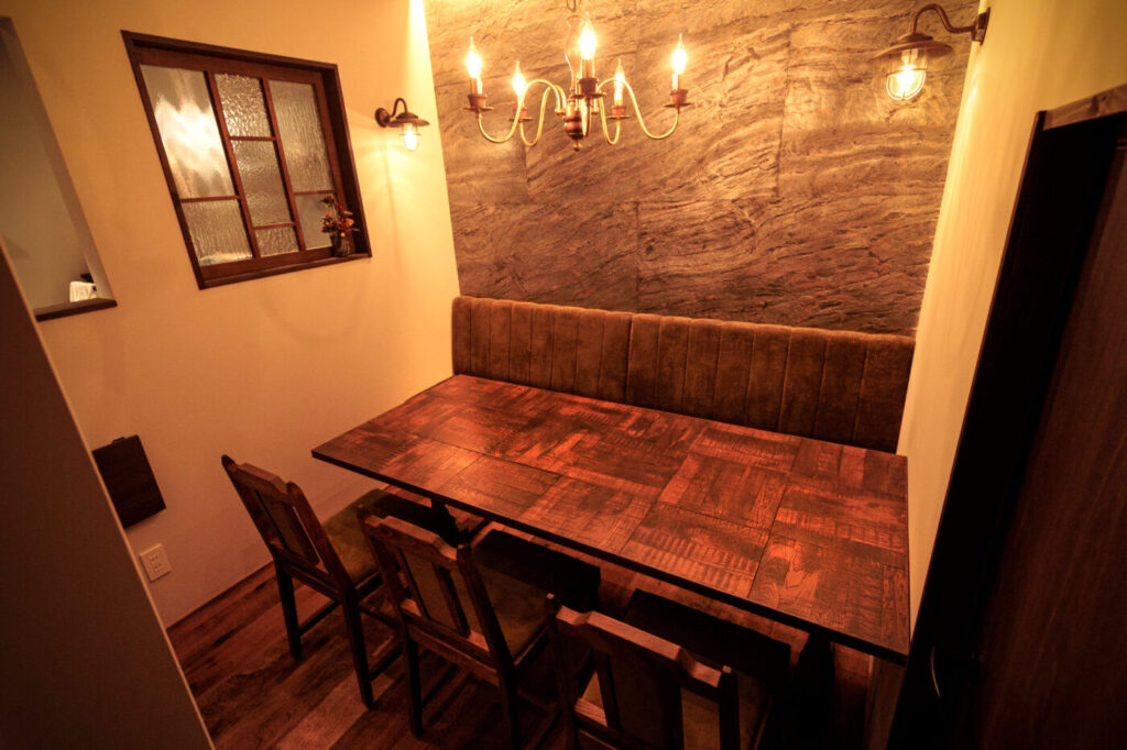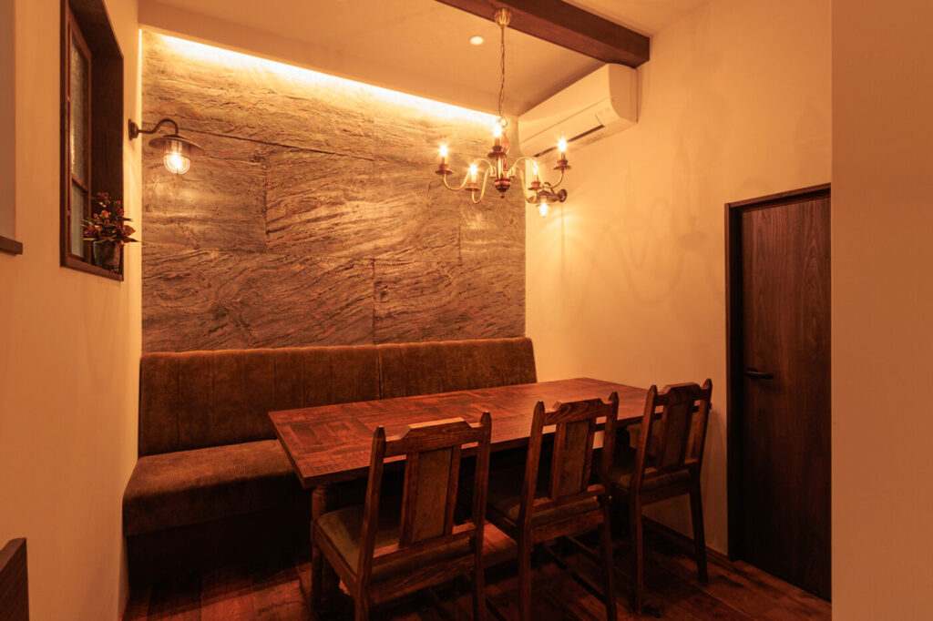 仕上材にオーク古材、アイアン、天然石、タイル、左官etc異素材を組み合わせ…アンティークの息吹を感じられる世界感を演出💫