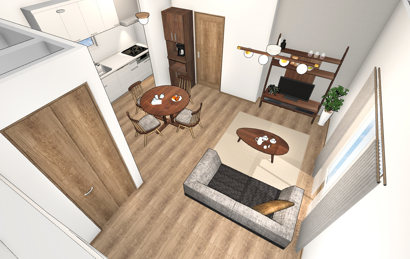 既存の家具の雰囲気に合わせて、調和がとれるように・・・ソファは置いているけどほとんど背もたれ替わりで・・・あまり座って過ごすことがない・・・