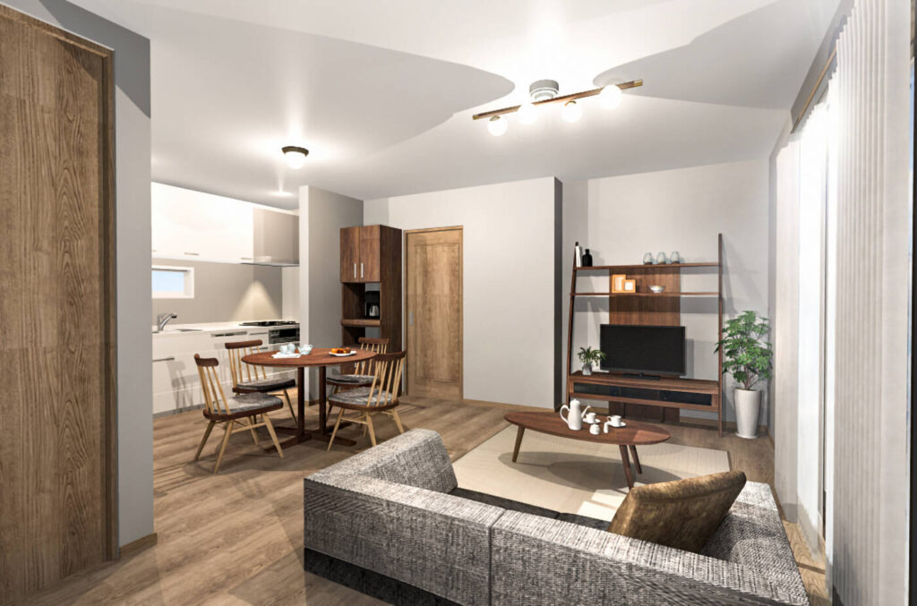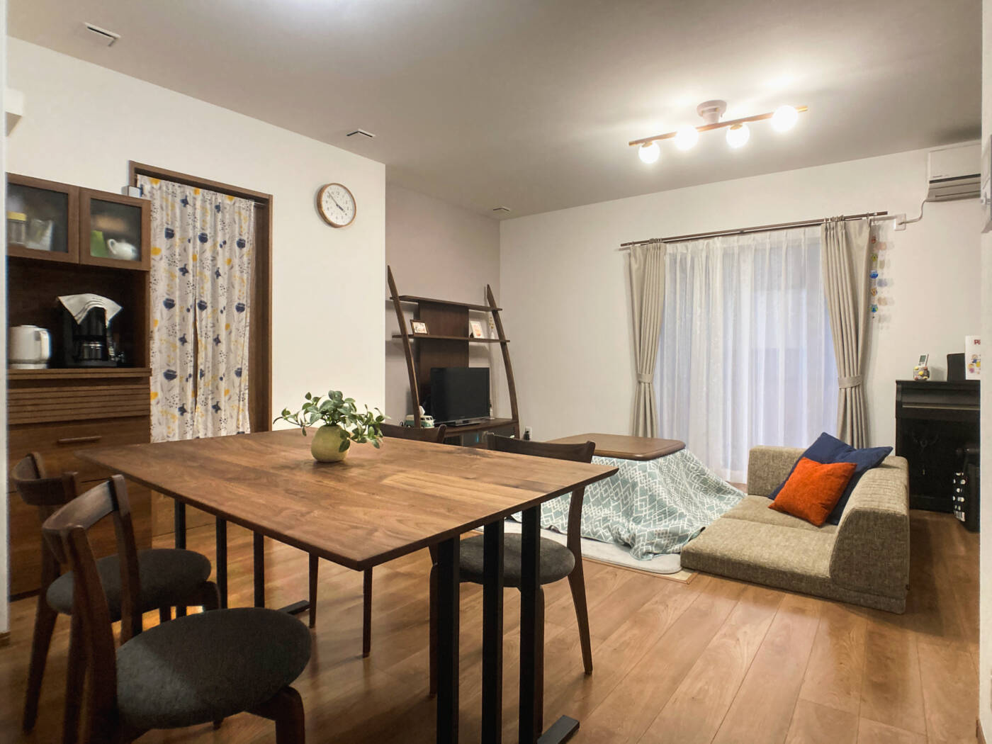 築10年程度の個人様宅。新築当時は最低限のインテリアでご用意されたようですが、この度、家具を中心に天井照明もリニューアルして頂きました。