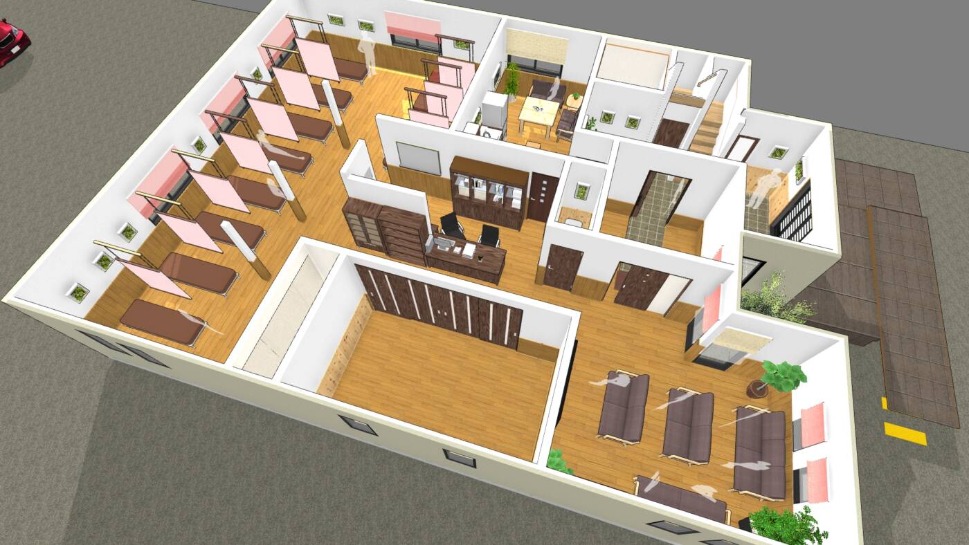 兵庫県初となる医療・介護・健康増進の複合施設『にしはらトータルヘルスケア』様グランドオープンにつき、インテリアのトータルプランニングをさせて頂きました(^O^)!!YAMANE DESIGN 3Dデジタルインテリアコーディネートプランを制作し、こだわり溢れる想いが形になりました★☆★特に川島織物ブランド、ツインシェードのデザインレースが太陽光を受け、うまく透け感を表現し、華やかな空間演出となりました(^。^) 家具類は天然木無垢の家具を中心にカーテンとのカラーバランスを考慮し、お選び頂きました。延べ面積400坪!!大型駐車場40台完備!!整骨院・鍼灸院・デイサービス・生体院・エステ・フィットネス・・・兵庫県初となる最大級の大型複合施設がついに完成です★ありふれたリハビリマシンではなく東洋医学を応用した革新的デイサービス★☆★自然素材のインテリア、高級感溢れる異空間で癒され、香りも楽しみながら過ごせるそうですよ(^O^)