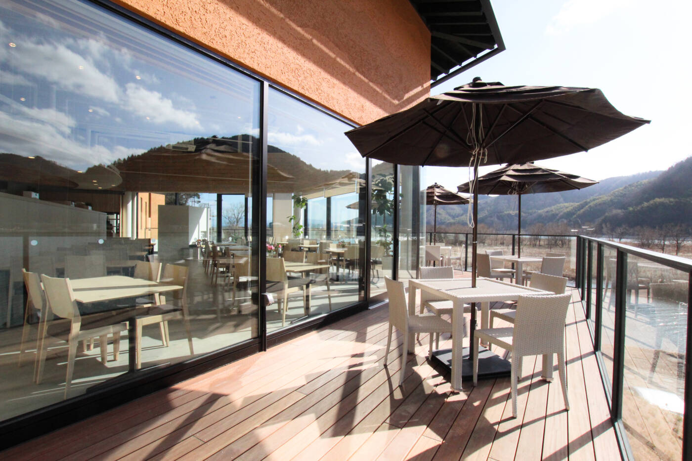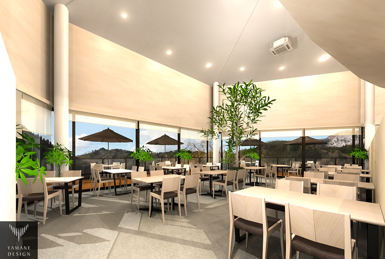 兵庫県最大の石の博物館「玄武洞ミュージアム」様が城崎温泉近郊に出現!!開館されて以来、今年で45年を迎えられ、全く新しく生まれ変わった豊岡市の新観光名所として、玄武洞公園麓に2018年3月24日GRANDOPEN(*^-^*)この度、主に「飲食・物販棟」において、オリジナル家具・物販什器、ブラインド関連をプランニングさせて頂きました(*^。^*)雄大な来日山~円山川望むレストランの完成イメージをご紹介させて頂きます★晴れた日はウッドデッキに出てパラソルの下でゆ~ったりと・・・大自然の中で寛ぎのひとときを過ごして頂けますよ★☆彡