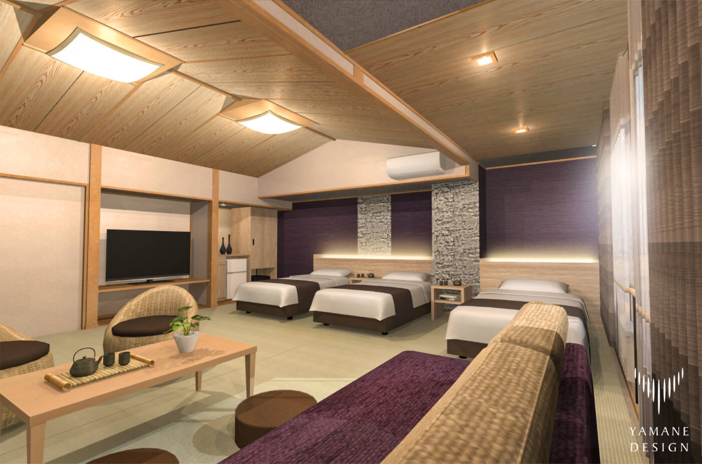 日本らしい和のイメージとスタイリッシュな現代感覚「和モダン空間」✨リニューアル工事に伴い、インテリアコーディネート承りました🌈💫今までと一味違う…ワンランク上の寛ぎ空間へ…✨イメージパースをCMで使って頂きました。